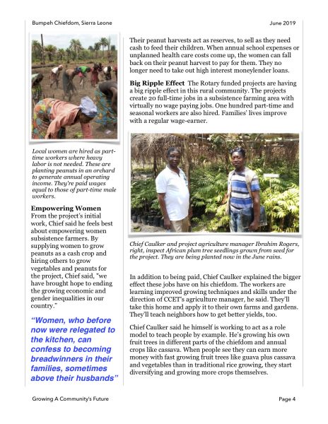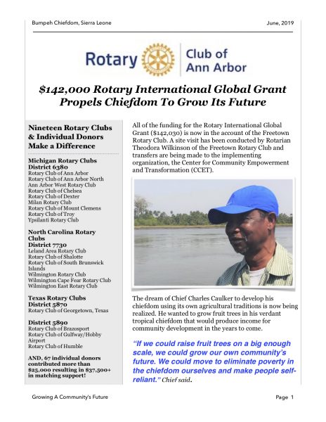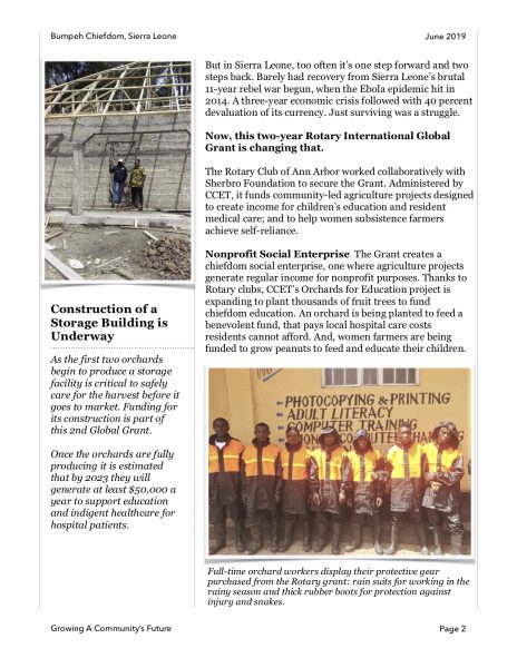 See below an update from RCAA member Mary Avrakotos on our Global Grant project in Sierra Leone.