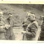 This is life at Solahutte, or, more officially, SS-Hutte Soletal, the rustic-style retreat built by slave laborers in 1942, 18 miles from Hell. Here, the Reich’s exhausted workhorses, the Totenkopf-SS camp staff and female auxiliaries, could restore themselves for a day or a week, depending on their degree of ‘service’. Senior officers could, of course, visit more frequently (Auschwitz’s first commandant, Rudolf Hoess, had a private cabin, which still stands); regardless, the accent was on rest, fresh air, good food, hikes and hunting excursions, comradery — fun. Since the gift (known as the ‘Hoecker,’ or ‘Auschwitz,’ Album) was made public, much scholarship has focused on the chilling aura of workaday normality pervading each picture. Officers stand around smoking and laughing: Hoess, who will hang in 1947, is in the midst of telling a joke; listening and grinning broadly is handsome Mengele, the monster doctor, sporting an impressive head of dark hair; and behind Hoess towers Josef Kramer, Birkenau’s commandant, who personally aided in the gassing of prisoners, and who, at Bergen-Belsen, would conduct American soldiers on an officious tour of his liberated boneyard.
