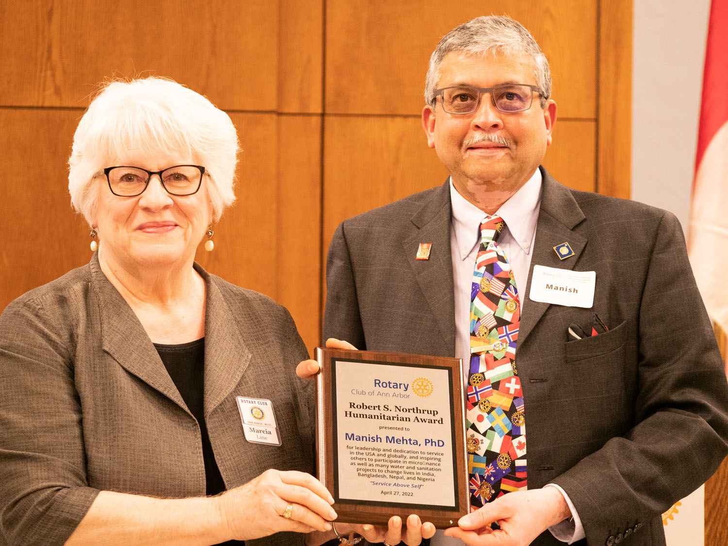 Norma Sarkar introduced Robert S. Northrup Humanitarian Award recipients – Dr. Henry Maicki (2021) and Manish Mehta, PhD (2022).