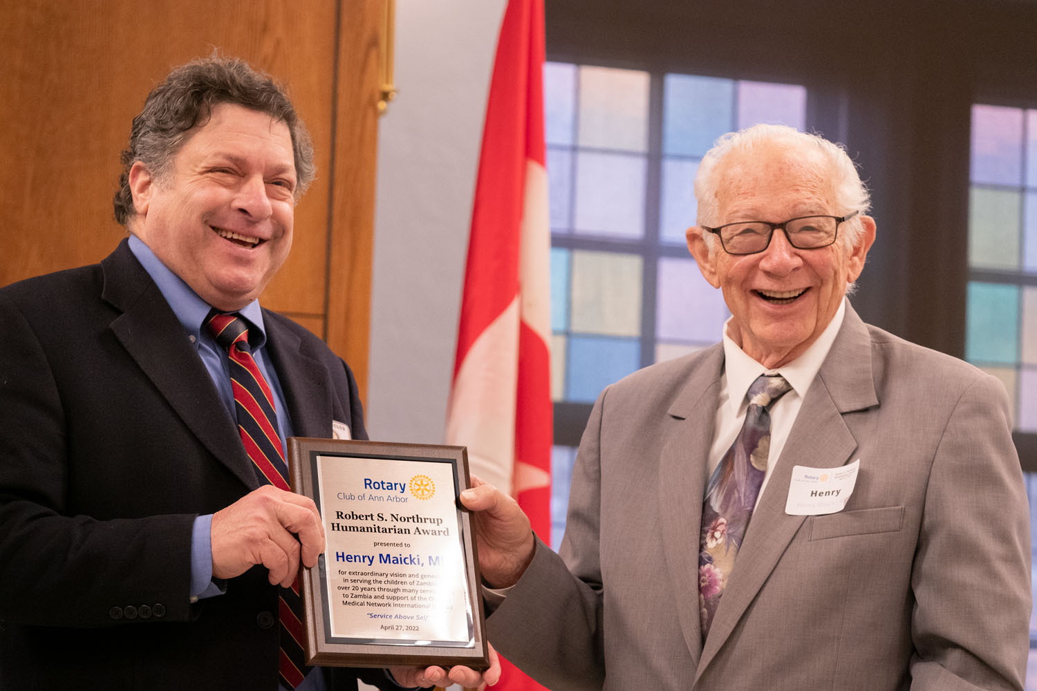 Eric Lipson presented the award to Dr. Henry Maicki who graciously accepted the award. He shared that his life has been a blessing with wonderful parents, wonderful wife & three children. He thanked those who have assisted with the Zambian humanitarian efforts. On his first Mission trip to Zambia, Africa in 2002, Henry recognized great needs of these people. He has since dedicated his life and passion to help the poor and orphaned children of Zambia through his work with the Orphan Medical Network International (known as OMNI). He has gone back for twenty years, serving as one of the physicians in treks out to villages in the bush. In many years he went more than once. Henry has also served on the Board of Directors as the Medical Director for Orphan Medical Network International (OMNI) since 2013.