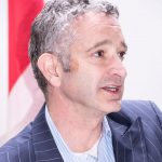 Returning to the podium, Greg greeted everyone warmly, thanked meeting volunteers, and asked hosts to introduce their guests. Past President Bob Kerry introduced Chris Stowe, “a development associate with the Boy Scouts of America”; Dallas Dort introduced Dave Hartman, “who’s [knowledgeable about] tech transfer, and is a serial entrepreneur”; Greg Molino was Dave Williams’ guest: “Greg’s worked with start-ups and private equity”; and Sara Maddock introduced Don and Jan Olsen “who are moving to Michigan from Maryland. Don is a retired colonel, and was raised in Flint”. A wave of genial applause welcomed all guests.