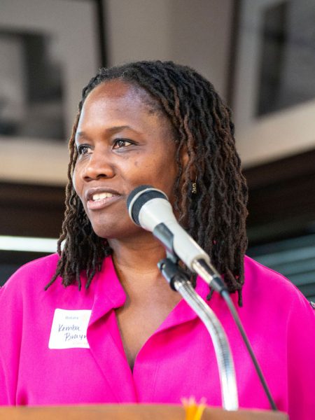 Speaker: Toastmaster extraordinaire Barbara Niess-May then introduced our speaker. “It is my pleasure to introduce a brilliant architect, Kemba Braynon. One of my best friends, Kemba is an author and [associated] with Quinn Evans Architects, in Ann Arbor. The eldest child of two professors who were passionate about the City of Detroit (her mother’s studies in [urban] planning affected Detroit and many other cities), Kemba is an architect, writer, and historic preservationist. Please give a Rotary welcome to my friend, Kemba Braynon.”