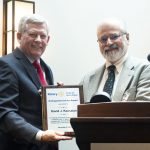 daughter!”), Mark described how “Dave stepped in big-time” as our Endowment Treasurer for 12 years. As a result, as Mark pointed out, “both our Endowment and its complexity have bloomed, with a present value of about $2,000,000. In addition to our traditional Community Service Assessment and support of international projects, community service grants, and scholarships, we have taken on additional fund raisers such as the annual Golf and Tennis Outing, and we have taken on huge one-time projects such as the Rotary Centennial Playground…Who has been guiding our financial operations during this time? It has been David Keosaian…[Therefore], it is with heartfelt gratitude that the Rotary Club of Ann Arbor celebrates the distinguished service of David Keosaian….” Then, Mark added a fitting summation: “More than just accounting, it’s the thought that goes with it.” Immediate Past President John Ackenhusen informed the assembly that Dave would also receive a Paul Harris Award, “the number of stars indicate this is just the latest increment as Dave has received many Paul Harrises.” Resounding applause showed the appreciation of the club for Dave’s outstanding service.