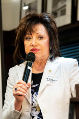Don Deatrick came to the podium to introduce our speaker: “Dr. Rose Bellanca has led Washtenaw Community College for seven years. She is only the fourth president since the College’s founding in 1965. She oversees a budget of $100,000,000, and has successfully run millage, scholarship, and grants campaigns totaling $15 million. WCC’s training programs provide internships to students, and the economic impact to our community is $20 million a year. Please give a warm welcome to Dr. Rose Bellanca.”