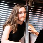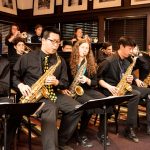 From Louis Armstrong to Dizzy Gillespie, from Ella Fitzgerald to Cary Kocher’s arrangement of “Pitiful,” composed for his daughter, Ella, who is the band’s lead singer, the concert was incredible. The audience marveled at the beauty and range of Ella Kocher’s multi-colored voice, along with the virtuosity of the soloists on trumpet, sax, trombone, keyboard, string bass, and guitar. The number “Please Don’t Be That Way” rolled along like a heaving sea, capturing perfectly the panache and discipline of Glenn Miller’s orchestra. “Nobody had a bigger influence than Ella Fitzgerald,” Leach declared, and Pioneer’s Ella did the great chanteuse justice. Again, in “Pitiful,” Ella’s alternately plaintive and sassy declamation ran the gamut of desire and soulful regret. One of your reporter’s favorites was one that David confessed “wasn’t that popular with the band,” 1979’s “Birdland”. Highly eccentric, the piece seemed to compel 110% from each musician; truly, there wasn’t an instant of ‘dead air’ as instrument after instrument tossed melodic variations back and forth in a flamboyant fretwork of delight.