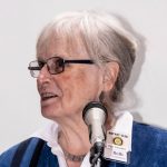 Song: Maestro extraordinaire, Rick Ingram, came up next. “I’m sorry, but when I was choosing the music, I thought it would still be raining.” His audience only half-laughed as all knew the cessation of precipitation could be shorter than the Christmas Truce of 1914. “So, let’s sing ‘Raindrops Keep Fallin’ On My Head’ — there’s a Rotary message in the lyrics.” And there certainly is, especially in the last two verses. “…Cryin’s not for me ’cause I’m never gonna stop the rain by complainin’. Because I’m free. Nothin’s worryin’ me.”