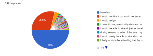 Question #4. If the club is no longer able to provide hybrid meetings, how would it affect your ongoing membership?