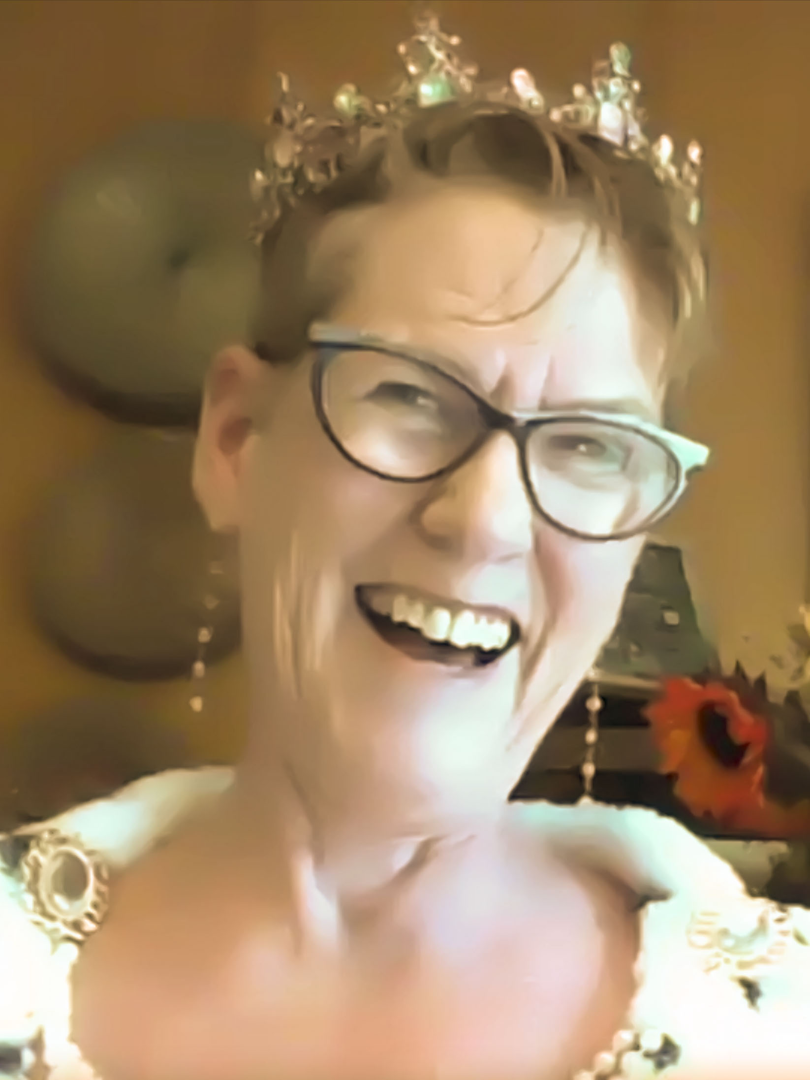Executive Director Lori Walters shut down the pre-meeting chatter at 12:30 with the regular reminders and turned the meeting over to President Joanne. This was her next-to-last meeting as President and she promoted herself to Queen, donning regal robes and a sparkly coronet which balked at cooperating.