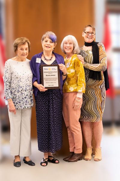 12:50 After Shelley and Anne completed the presentation of Bev’s background, Joanne Pierson invited Bev up on the stage and awarded her the Plaque for Distinguished Service Award. We thank Bev Seiford for all of her efforts and wonderful achievements supporting Rotary!