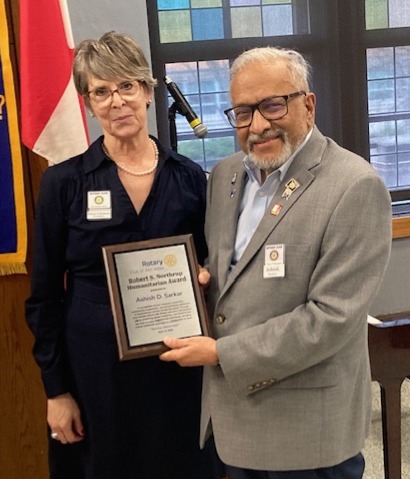 Collyer then returned to the podium and asked the audience to applaud the 2026 Robert S. Northrup Humanitarian Award winner, Ashish Sarkar. The award plague reads “In recognition of your visionary leadership, unwavering compassion, and extraordinary dedication to humanitarian service across the world. Through your tireless efforts with Rotary and your instrumental role in advancing global initiatives, you transformed the lives of many underserved individuals, bringing critical healthcare and hope to communities in need. Service above Self.”