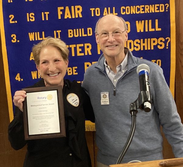 Distinguished Service Award: After a short video that shared the impact Girls Group has make on the lives of young women in our community Collyer Smith presented the Distinguished Service Award, our club’s highest honor, to Sue Schooner Executive Director and Founder of Girls Group. Sue accepted the award, expressing gratitude and humility at Girls Group being honored by an organization committed to service, integrity, and community leadership. She said the mission of Girls Group is both simple and urgent. To ensure that girls in our community facing economic hardship have access to the basic needs and supportive relationships that are essential, not only for success, but for dignity. Click here to learn more about Girls Group. The selection committee included Joyce Hunter, Susan Froelich and Collyer Smith.