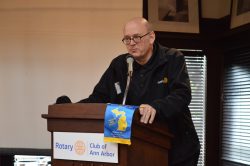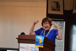 Joan Knoertzer’s lovely piano prelude wafted members and guests gently toward the business at hand. A ring of the Rotary bell by President Emeritus John Ackenhusen, who looked remarkably relaxed from his several weeks of freedom, signaled the meeting’s commencement. James Corey came forward and delivered a cogent Inspiration, opening with a quote from acclaimed author John Green: “‘…Things can be done better and better.’ Thank you, Rotary, for all that you do.”