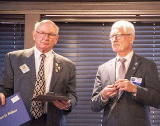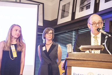 Past President Norman Herbert came up next to honor the year’s Benefactors and Sustainers. He began, “The Foundation Development Committee was founded in 1985, and is structured as a 501(c)3. It is for projects that go over and above our usual activities,” Norm explained. “Funds come from income — each year 4.25% is distributed. In the last ten years $664,000 has been distributed. We invite each of you to make a bequest from your estate. Increasing these gifts will allow us to make [even more of an impact internationally.]”