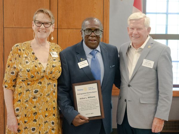 Joanne Pierson presented Arthur Williams with the Distinguished Service Award. Arthur has a long career in leading schools, elementary and secondary, and has worked in districts across the country. He has been called back into service as interim principal on several occasions. He is a member of a variety of educational organizations which he has served with distinction. He has contributed his time and talent to many community organizations, including our club, serving currently as Director of Youth Development. Congratulations, Arthur, and Thank You!