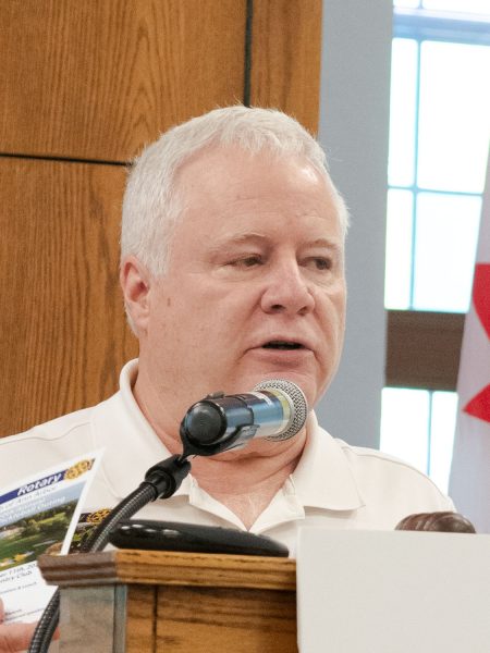 Roy More took the podium to talk about the GPO – our golf outing that this year that includes pickleball. This, our only fund raiser, will be September 11 at Barton Hills Country Club. The day includes golf, pickleball and dinner. Signups are open so get on board now!