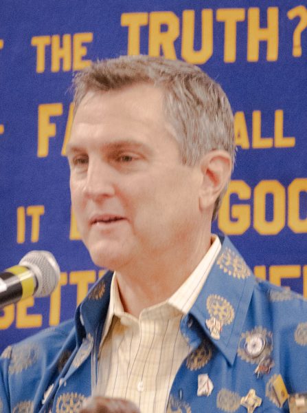 President-Elect Mark Foster stepped up to the podium and adorned the traditional RCAA jacket from outgoing President Ouimet. He thanked President Ouimet for his leadership and accomplishments over the past year including overcoming challenges which included resignation of the Club Administrator and last-minute change in Treasurer. President Mark Foster reflected on his father’s term as president in 1996-97 president and to commemorate this & to honor his memory, Mark wore his father’s Rotary ring. President Foster also found an accordion file of his father’s with “Rotary club humor” and shared the top oxymorons from this file which included: “Found missing, act naturally, legally drunk, but head, definite maybe, small crowd, same difference”. There will be more humor to come in upcoming meetings. Video montage of before/after photos of how presidents have aged during office with the final picture showing how President Ouimet aged during his tenure and a prediction of how President Foster will look.