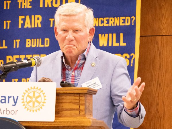 President Ouimet thanked Dawn Johnson for all of her efforts in making our meetings successful. She embodies the Rotary spirit of service. Other meeting volunteers and birthdays for the week were recognized. Tom Millard introduced Millie Danielson’s son who was visiting as Millie is convalescing and sends her best wishes to members. Caroline Andrews introduced her father Bruce Dunbar, a visiting Rotarian from Rotary Ann Arbor West. Rosemarie Rowney welcomed Manish Mehta from Rotary Ann Arbor North.