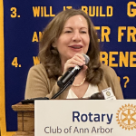 Michelle Deatrick introduced our fellow Rotarian Featured Speaker, Greg Dill, our Washtenaw County Administrator. The title of Greg’s presentation was “Preparing to shift: demographics, investments, vision.” A focus of his work area relates to aligning their work with community values. Our county has evolved in terms of the needs of our communities; no longer are we primarily a rural county with two urban centers. To give perspective to that, Greg refreshed our memory with changes in Genesee County after the loss of a primary employer in General Motors and how that changed the landscape in that county. Years later, a somewhat similar circumstance happened in our own county with the loss of Pfizer, a large employer in our area. In more recent years, we’ve faced other challenges, namely the Covid Pandemic. During the early days of the pandemic, the County did not shut down operations. Instead, they worked hard to distribute vaccinations and to employ best practices for public health.