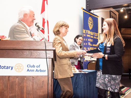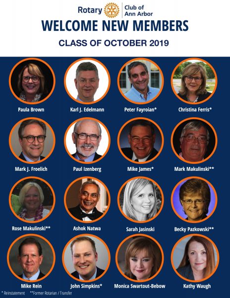 Bev Sieford invited us all to the Rotaract Charter Dinner on November 12 at the Cottage Inn. RSVPs are needed: bsieford@gmail.com. Mentors are needed for Rotaractors, a pleasant assignment that results in a friendship between the Rotarian and an accomplished, enthusiastic future leader. Contact Don Duquette, duquette@umich.edu, or Dennis Powers, carhart2018@aol.com, to learn more.
