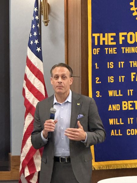 Col. Miller began his talk by recognizing those members of the club who served in the military, and then thanking the club’s membership for their active participation in community service.