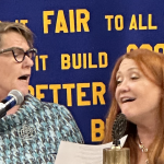 Songstress and Past President Joanne Pierson called chanteuse Secretary Kathy Waugh to the podium to lead us in a heartfelt rendition of Put a Little Love in Your Heart.  Jackie DeShannon would have been proud hearing our club singing his song.