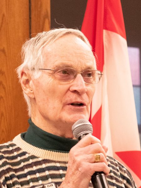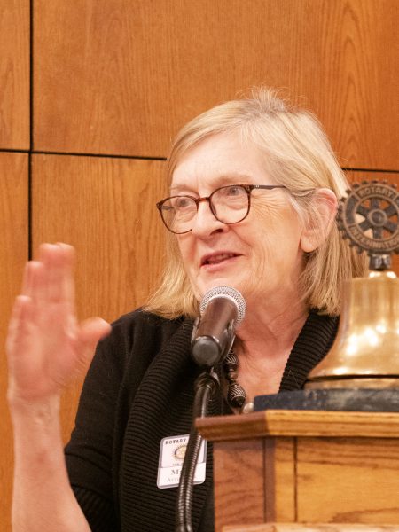 Don Deatrick took the (mobile) podium to share with the club that on December 8, 104 personal hygiene kits for veterans were made by Rotarians and spouses from our club and that of Ann Arbor North. The distinctive blue gift bags were distributed to in- and out-patients at the VA hospital and at Fisher House. Don shared a poignant story of one veteran who was so moved by the gift and said, “Thank you. You’ve made my day.”