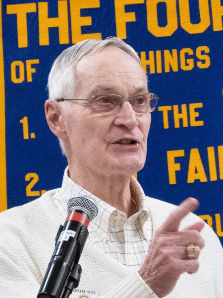 Downs Herold led us in a George Cohan tune of Give My Regards to Broadway, to Bill Ives’ rewritten words of Sing Out a Song of Rot’ry with the piano flourishes again by Tom Strode.