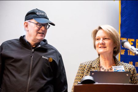 President Greg introduced Guests and Visiting Rotarians. Among the Visiting Veterans was Deb Bolino, Dave Williams’ daughter, and Deb’s father-in-law Gus. He is a Navy Veteran.