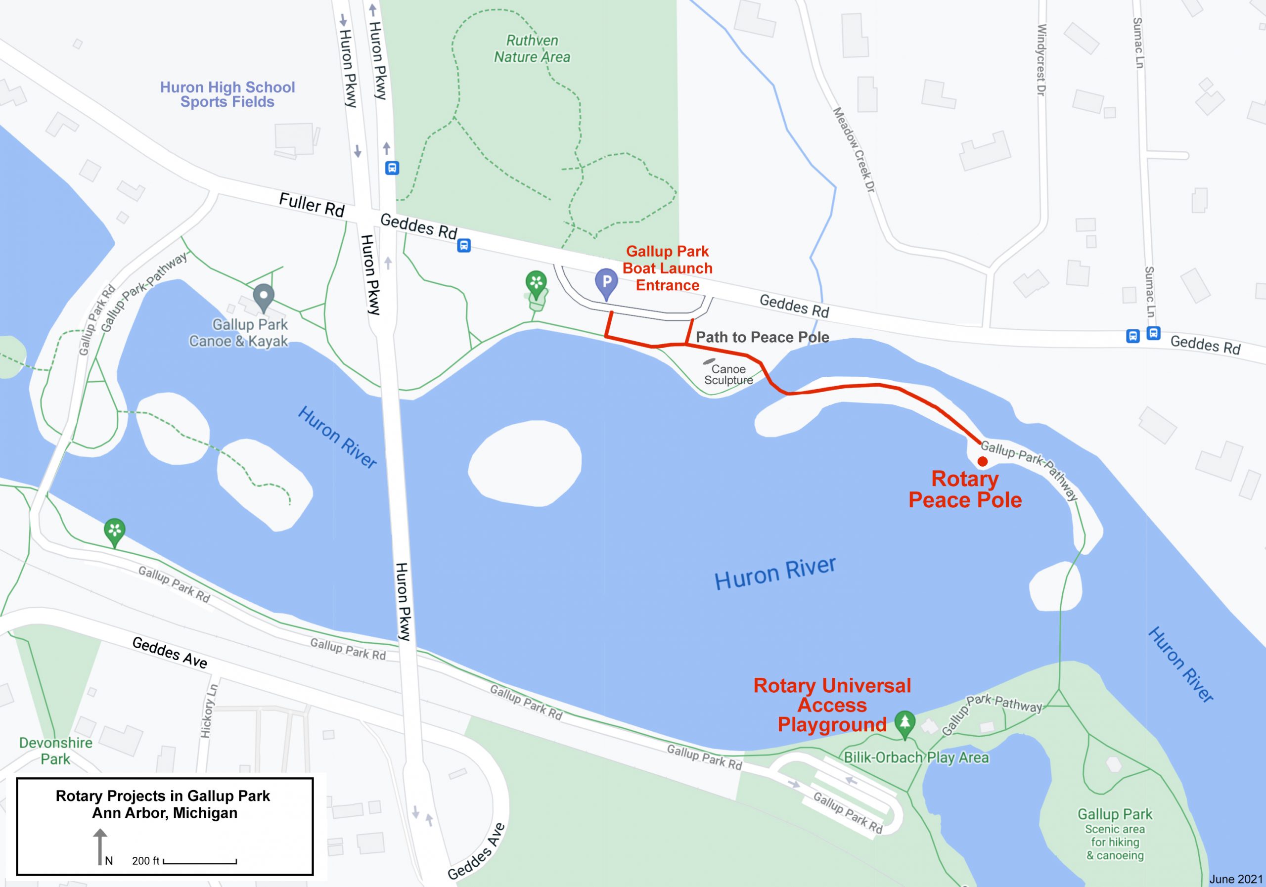 The celebration is Wednesday, June 30 from 5:00 – 7:00pm, rain date is July 1, same time. Park in the lot off of Geddes Road, east of Huron Parkway. Turn left on the path in front of the upturned canoes. Cross the first two bridges and the Peace Pole is at the end of the second bridge on the right hand side. Bring portable chairs if you wish to sit down for Welcome (only one bench at site and not facing Pole).
