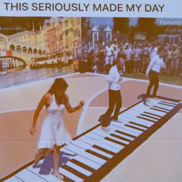 12:35 As a musical inspiration, Rotarian Shelley MacMillan shared a video depicting three musicians “playing” a very large piano outdoors on the ground with their feet. A very impressive musical and physical accomplishment!