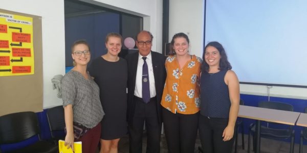 Abbey Edwards, UM Rotaract President 2018-19, is a little over a month into her 27-month journey with the Peace Corps in Peru, and she reached out to share a recent experience she had there with Rotary. They had a panel of community stakeholders visit the training center to talk about their jobs, especially in the areas of health, education, and social development programs. To Abbey’s surprise, a Rotary member from the club in Lima showed up and welcomed her with open arms after she told him about her connections with Rotary back home. She wrote, “It was a great interaction that reminded me the presence of Rotary and the wonderful people who are a part of it all around the world.” Attached is a picture of Abbey (far right) and a few other volunteers, along with Rotarian Vidal from the Lima Club. You can follow Abbey’s adventure at her blog mypeaceofperu.com. Go Blue! Go Rotary!