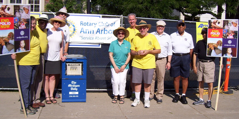 A great civic organization (the Rotary Club of Ann Arbor) marched in a great civic event (the JayCee’s Fourth of July Parade) on Wednesday, and the results were fantastic! Our marchers include Greg and Patricia Stejskal, Ashish and Norma Sarkar, Mary Avrokatos, Ed Wier, Ed Hoffman, Roger Fraser, Agnes and Jim Reading, Art Williams, Art Di Blassio, Joanne Pierson, Lou Calloway, Mary Steffek-Blaske, Terry Linden, Irem Yoruk, Christie Bacon (and her three-year-old son), and yours truly.
