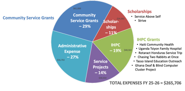 • One-third of our dues goes to RI and District dues (paid 2x per year).
